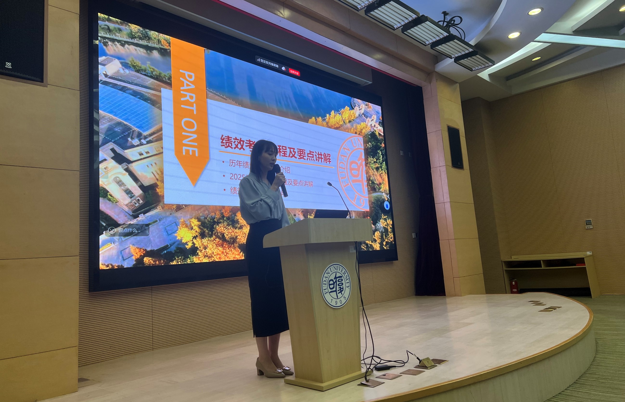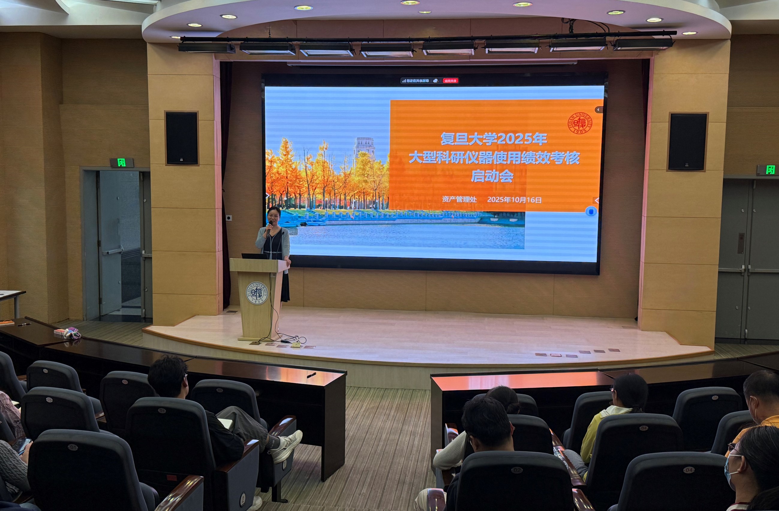 10月17日下午,复旦大学2025年大型科研仪器使用绩效考核启动会在江湾校区先进材料楼一楼报告厅召开。会议采取线下与线上相结合的方式,全校各单位负责仪器共享工作的分管领导、联络人与仪器负责人等共计100余人参会,会议由资产管理处副处长谢静芳主持。