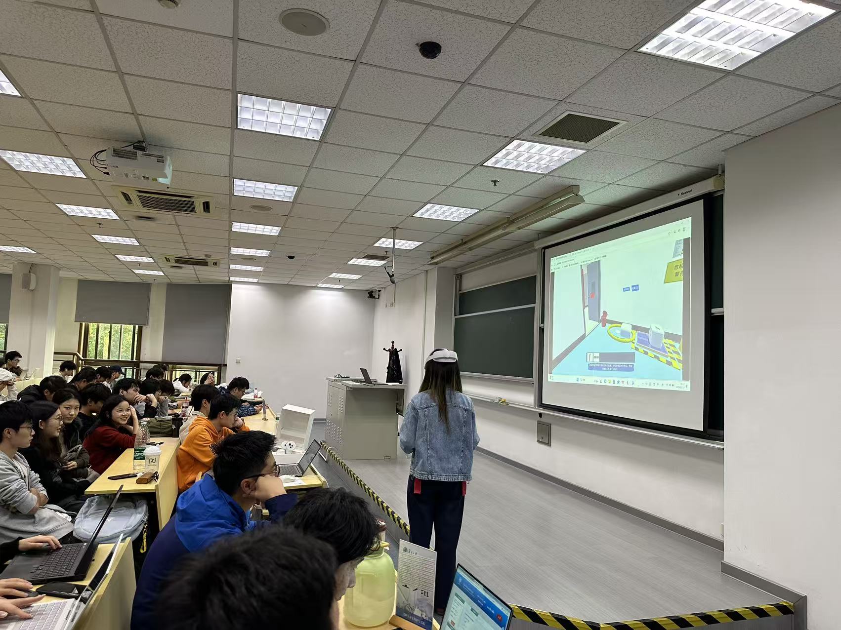 1114日,实验室安全VR化身为高分子科学系《实验室安全理论与实践》课堂“小助手”,帮助师生更为清晰直观地学习实验室安全应急小知识。