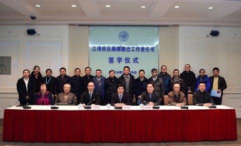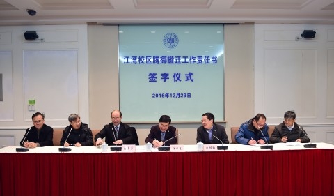 为全面推进江湾校区新建楼宇功能化实现的进程,确保相关院系如期入驻,12月29日,学校举行江湾校区相关楼宇启用及院系腾挪搬迁工作责任书签字仪式。即将入驻江湾校区的化学系、高分子系、物理学系、环境科学与工程系、大气科学研究院、材料科学系、分析测试中心以及拟调整的专用材料与装备技术研究院等单位党政负责人及相关职能部门负责人在工作责任书上签字。校长许宁生作为腾挪搬迁工作领导小组负责人签字,并对各单位下一步工作提出要求。仪式上,常务副校长包信和介绍了签订责任书的背景,副校长张志勇主持签字仪式。