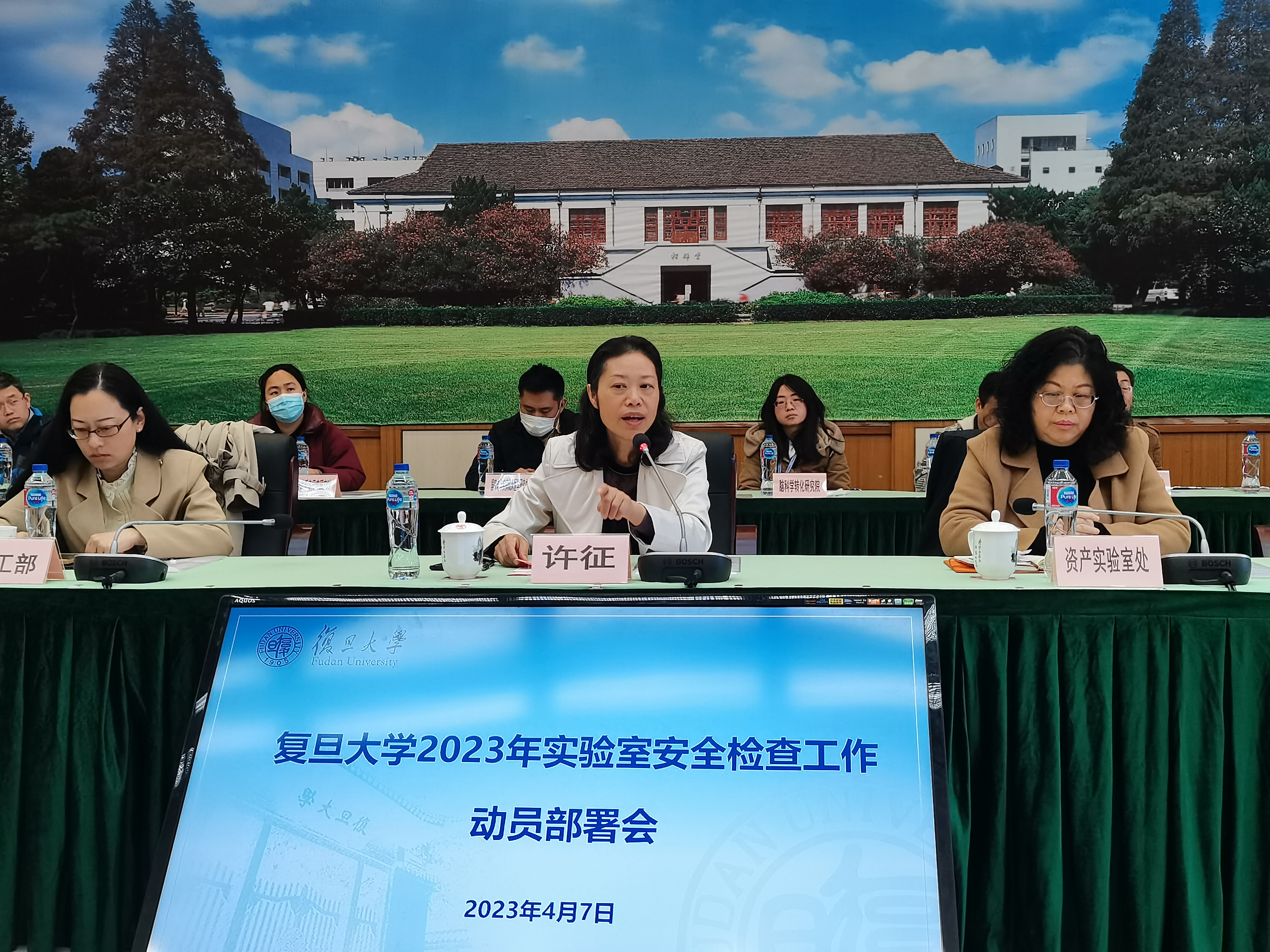 4月7日上午,复旦大学2023年度实验室安全检查工作动员部署会在邯郸校区逸夫科技楼召开。常务副校长许征出席会议并讲话,实验室安全工作组成员、各单位分管实验室安全工作同志等60余人参加会议。