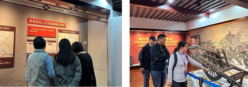 一幅幅历史照片,一件件支前文物述说着“民工三件宝”、半截棉袍等动人的故事,一个个鲜活的人民英雄光辉形象走进同志们的心间。大家跟随志愿者的讲解,不时驻足交流。